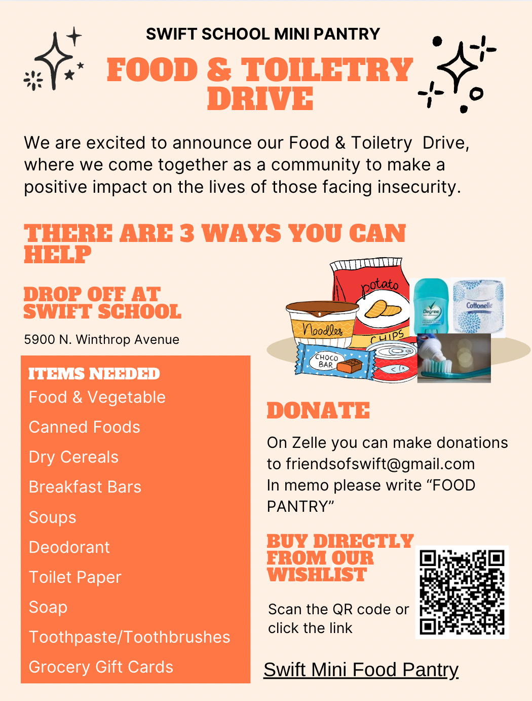 So I started working with my local elementary school (Swift Elementary) to do a food & toiletry drive for those impacted by the SNAP Cuts.